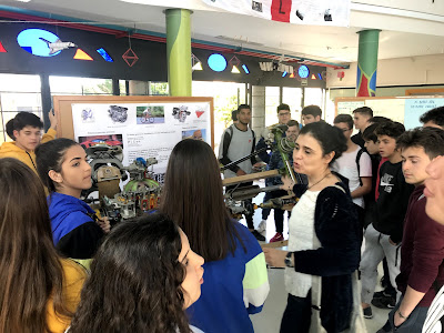 El departamento de Automoción preparó una maqueta de cambio de marchas que está siendo las delicias de muchos de sus compañeros, además de un cartel que habían preparado y expuesto en el recibidor del instituto donde se relacionaba el número Pi con el movimiento, los motores y los vehículos.