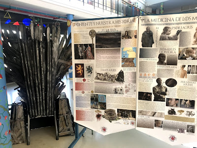 Tras explicar la carga científica que llevábamos en la cartelería me gustaría hacer referencia al resto de elementos que componían nuestra propuesta, puesto que creo que son una muy buena muestra del carácter interdisciplinar de Ciencia de tronos: